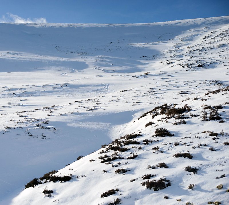 Tracks got a bit claggy lower down though, the snow had succombed to warmth and crusting.